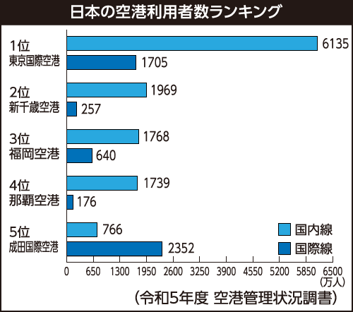 国土交通省の航空輸送統計速報によると、2024年度の国内定期航空輸送の旅客数は前年度比2.9%増の1億702万人。国際航空輸送の旅客数は同24.5%増の2022万人。いずれも4年連続の増加で、需要回復は好調です。成田国際空港(NAA)発表2024年空港運用状況によると、国際線利用外国人数が初めて2000万人を突破、過去最高となっています。