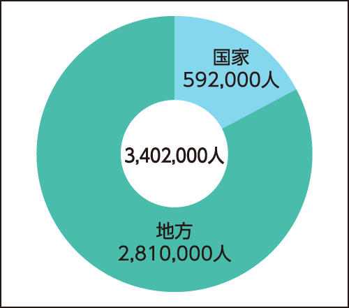 都道府県庁や市役所、町村役場、地方の警察庁・消防署職員、地方自治体が運営する保育園や福祉施設、図書館・博物館・美術館、県立病院、公立小中高校など