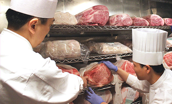 入社後はメインダイニングのレ セゾンに配属され、ガルド・マンジェ(前菜)とポワソン(魚料理)の担当をしていました。その後、入社3年目で肉の専門知識を身につけたいと思い希望していたブッチャーに異動しました。ポワソン(魚料理)の付け合わせであるガルニを担当していたときに、お客様に褒められたことがあり、あの喜びは今でも忘れられません。そこでの経験を踏まえて、より専門的なことを学びたいと考え、ブッチャーヘの異動を希望しました。